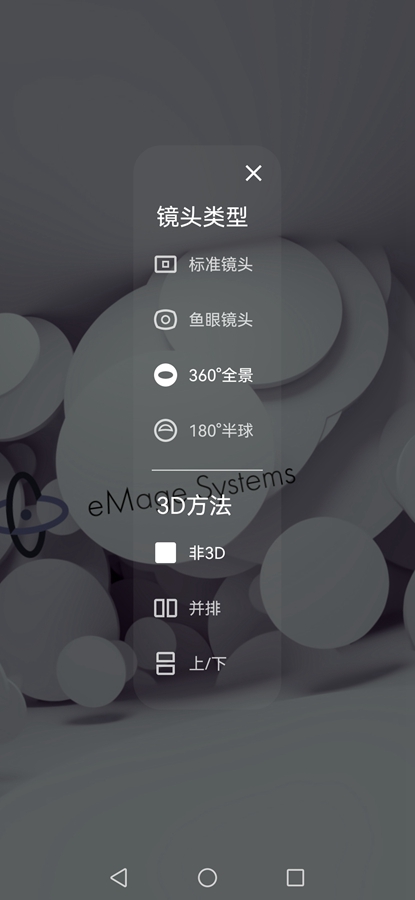 支持360°和180°等距矩形柱面、标准镜头和鱼眼镜头的摄影和视频