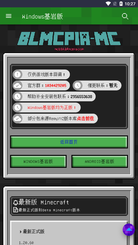 2、根据设备属性来选择,WINDOWS基岩版/ANDROID基岩版。