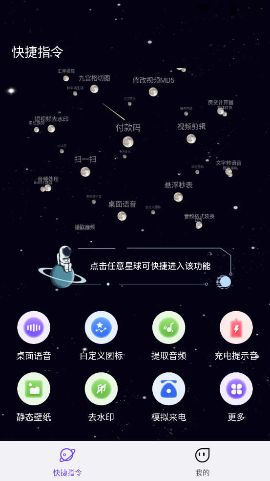 选择悬浮星球或者点击功能入口即可使用相应功能