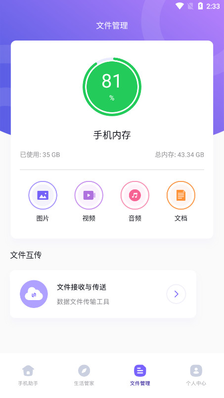3、【文件管理】兼顾垃圾清理和文件互传,即保证了设备的稳定运行,也为文件的传输管理带来也极大的方便。