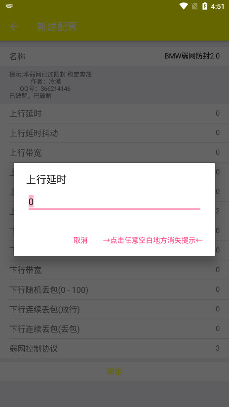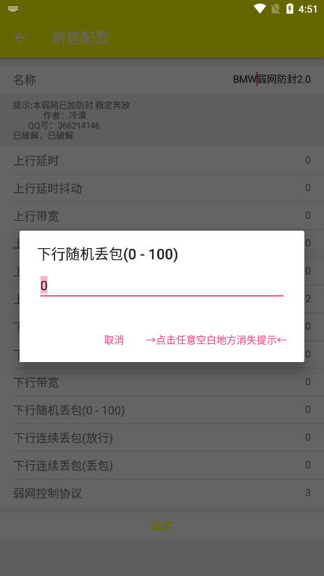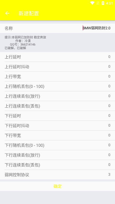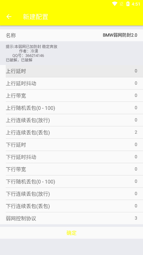 3、这里设置完以上参数以后,点击确定,在软件首页也能够看到刚才我们编辑完成的弱网配置。