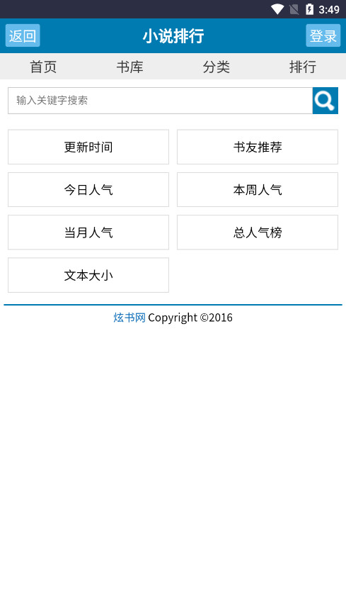 1、下载以后炫书网电子书TXT手机免费下载以后打开,软件本身以首页、书城、分类和排行等几个部分组成。