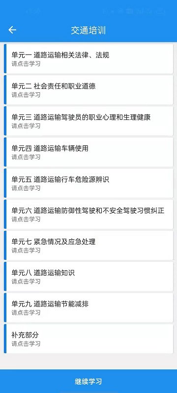 3.app的使用有效地解决了道路运输全行业理论学习的工学矛盾问题,只要具备网络环境,就可以实现随时随地的学习.app提供全面、权威、规范的网络课程,充分利用多媒体与虚拟技术,让你在寓教于乐中学习安全驾驶知识、培养安全驾驶意识.