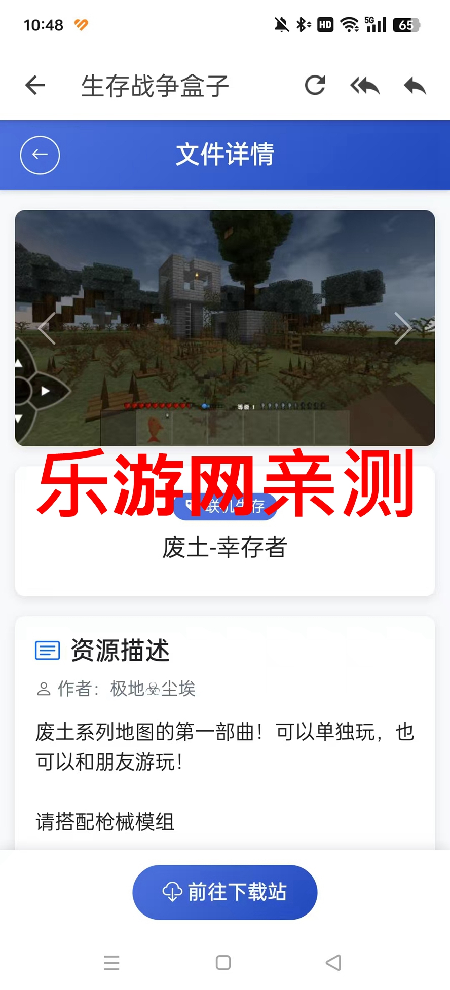 1、下载乐游网生存战争盒子资源包,点击“滑动开始下一步”。