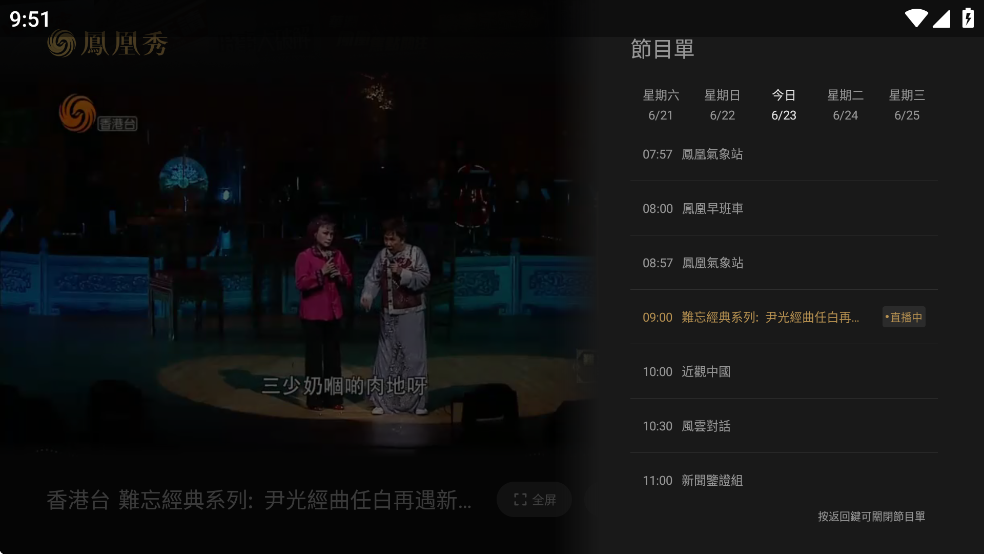 点击【节目单】可以查看一个星期的节目表。
