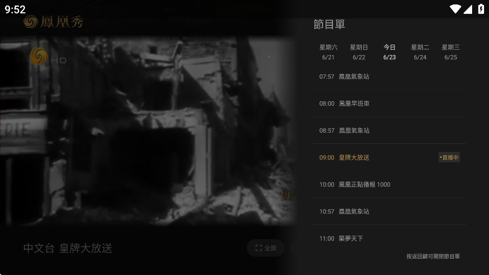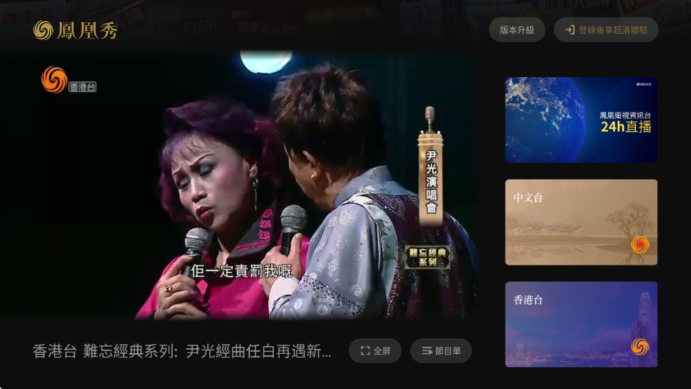 观看凤凰资讯、凤凰中文、凤凰香港三个电视台节目的TV工具,安卓手机也可以用,速度很快。