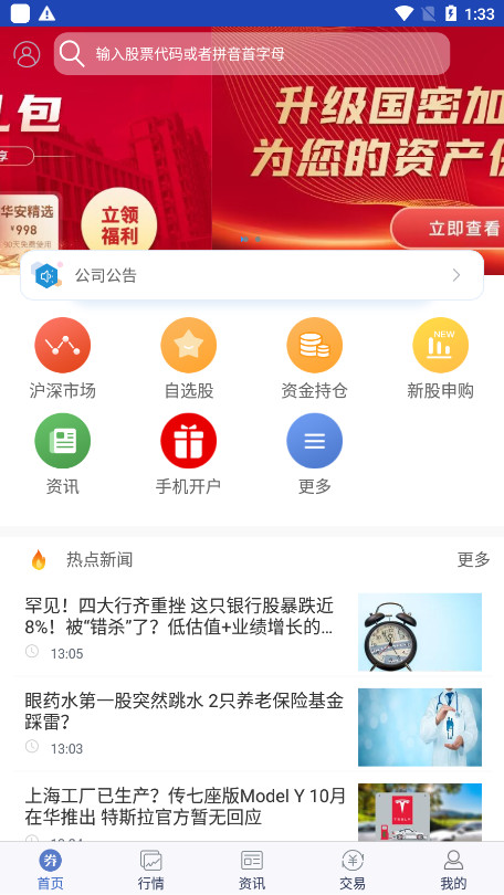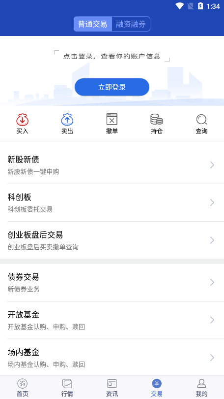 在线交易-兼具普通交易和闪电交易,普通股票包括股票买卖、新股申购、基金申赎、债券回购、银证转账、账号查询、融资融券等交易功能满足您的投资所需。