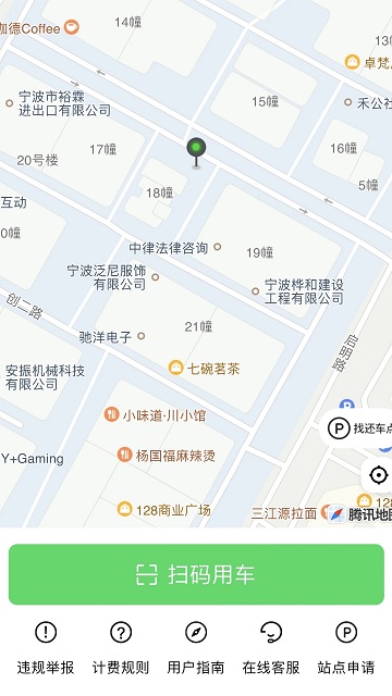 2、扫描车身二维码解锁车辆,系统自动开始记录使用时间与里程。