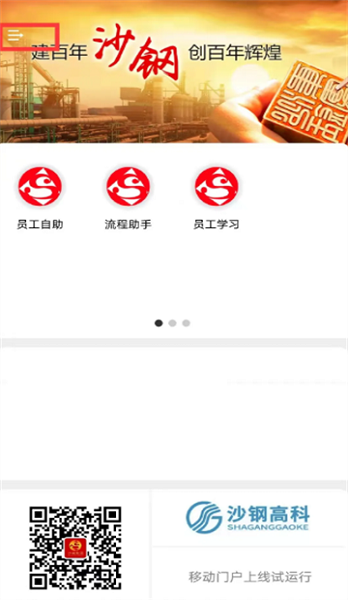 进入沙钢移动门户APP,输入账号密码,账号为8位工号,密码默认123456,点击登录