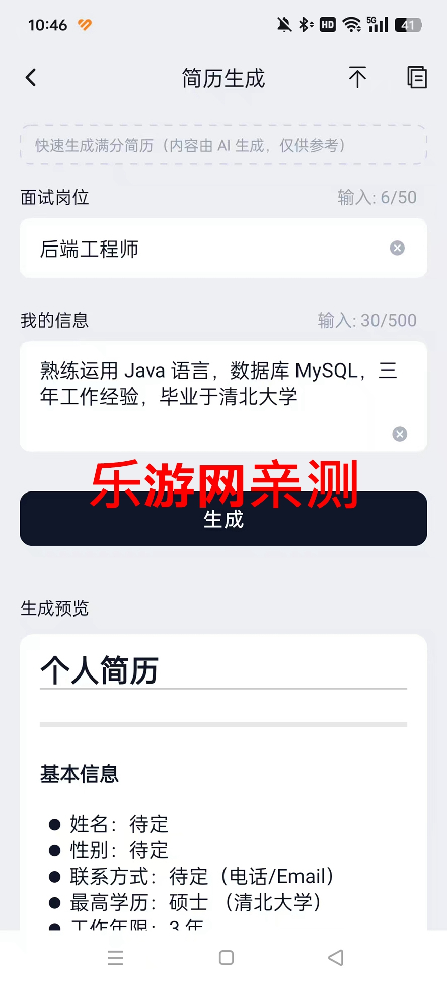 5、“简历”以AI的方式归纳总结,量身打造专属你的简历包装。