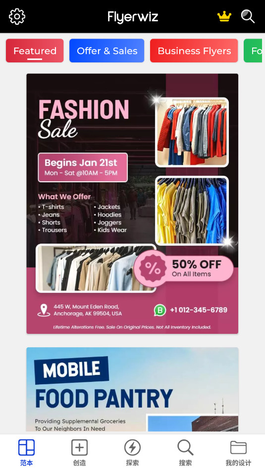 Flyer Maker使用传单制作器和海报制作器应用程序创建传单。不需要图形设计技能。20000+传单模板。免费、快速且易于使用。