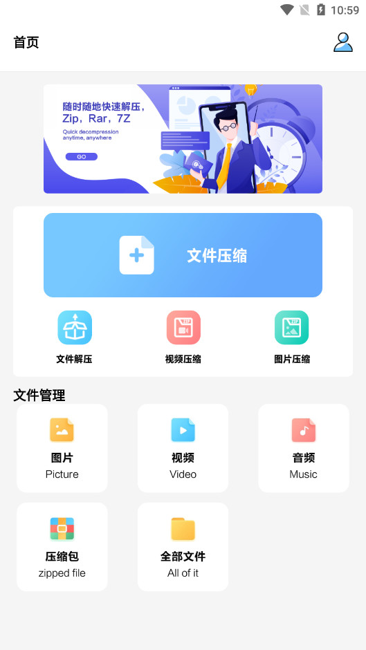 《360解压缩》是一款完全免费的软件,软件安装后打开就能使用,支持RAR、ZIP和其他多种格式的压缩文件,解决手机文件压缩、解压的难题。打开软件后它一般会自动弹出授予文件管理权限,进入软件后顶端带+号是压缩按钮,带箭头是解压按钮,后面紧跟着就是删除文件功能,无其他多余功能。