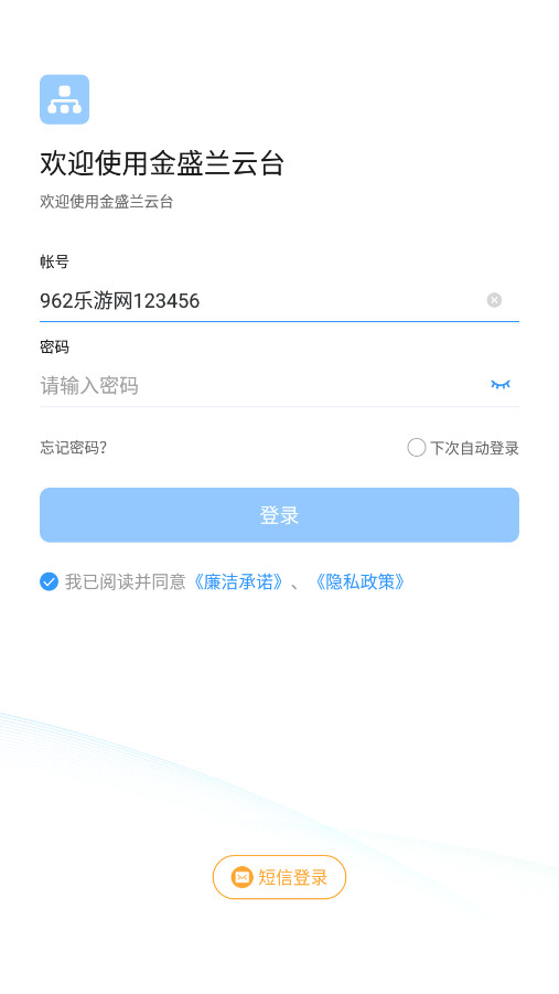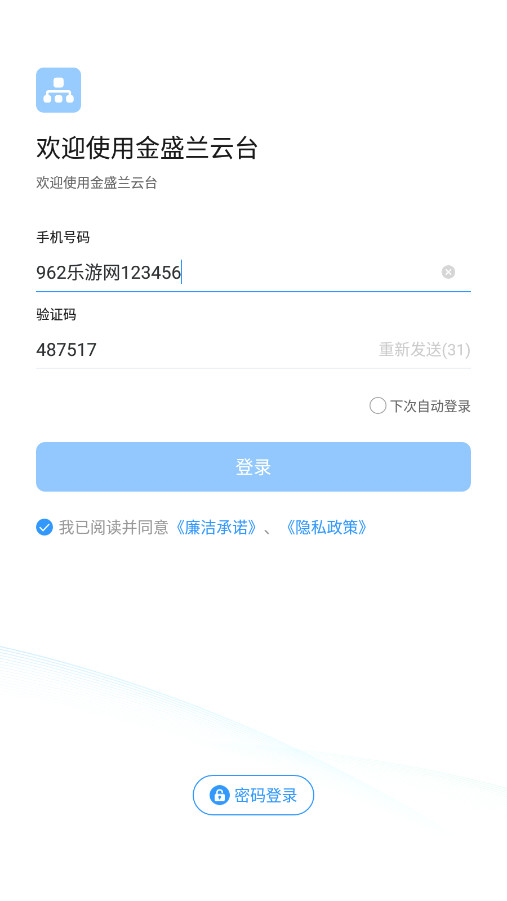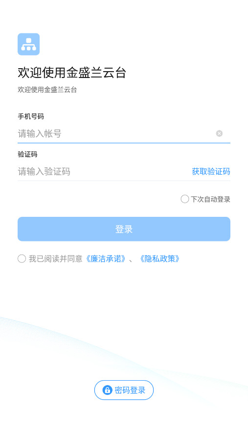 1、打开安装好的智慧金盛兰app,选择下方的【密码登录】。