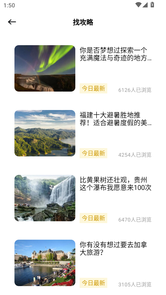 2、点击进入找攻略,可以看到有全球各国各地的旅游攻略