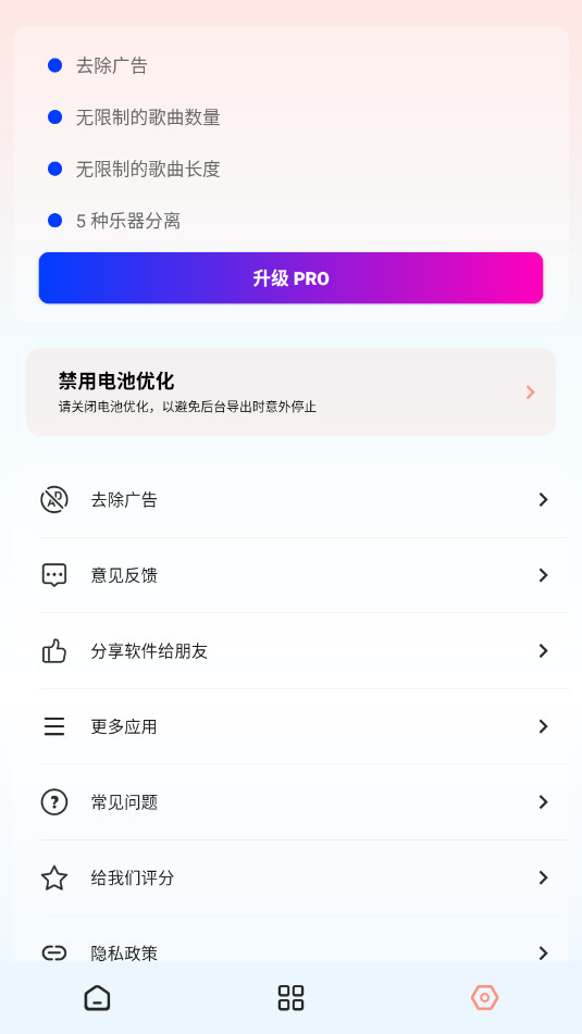《人声分离》(VocalRemoverpro)是一款专业的伴奏提取音频处理工具,寻找一款能够帮助您成为K歌达人、提升音乐创作能力的应用程序?人声分离为您提供自动识别和分离歌曲中的人声和伴奏的功能,让您轻松享受音乐创作的乐趣。准确的自动分离各个不同的音轨,同时解锁了专业版功能,快来试试吧!
