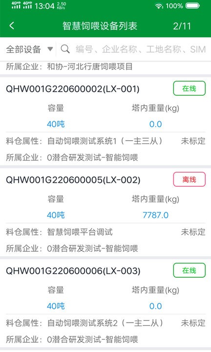 3.软件可以实时查询设备中的存量、出量以及各种信息,用户还可以远程对各种养殖设备进行管理,查看机器的运行情况等