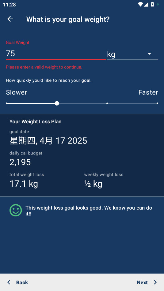 输入数值以后会根据你的目标计算使用的时间和每周的目标