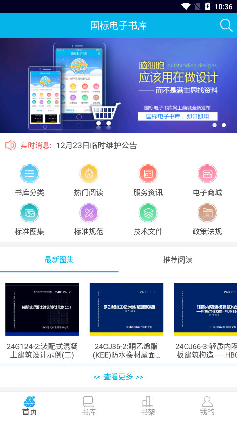 《国标电子书库APP》作为建筑标准电子书库,完整收录了国家建筑标准设计全专业一千多项图集,以及两万多项政策法规和技术文件,准确而完整。与中南标办、吉林标办等大区标图集、地方标图集及标准规范归口管理单位携手共建。用户可自主定制平台资源内容,或将本单位企业标准等内部共享技术资源整合进来,打造专属数字图书馆,提升技术质量管理水平。