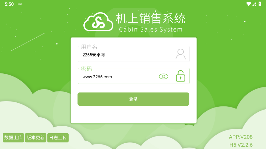 app左下方,支持数据上传、版本更新、日志上传等;
