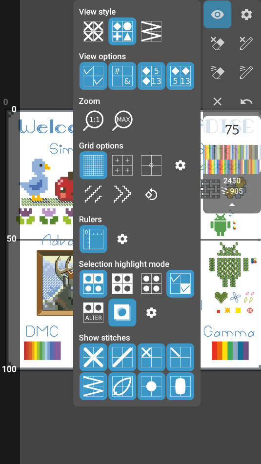 高级工具集:提供多种工具,如颜色选择、统计数据、目标跟踪等,优化刺绣过程。
