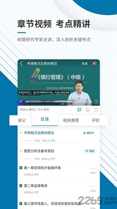 根据银行考试最新大纲及官方教材修订补充,从基础抓起,章节考点课程精讲,更有对应章节练习题及视频讲解!
