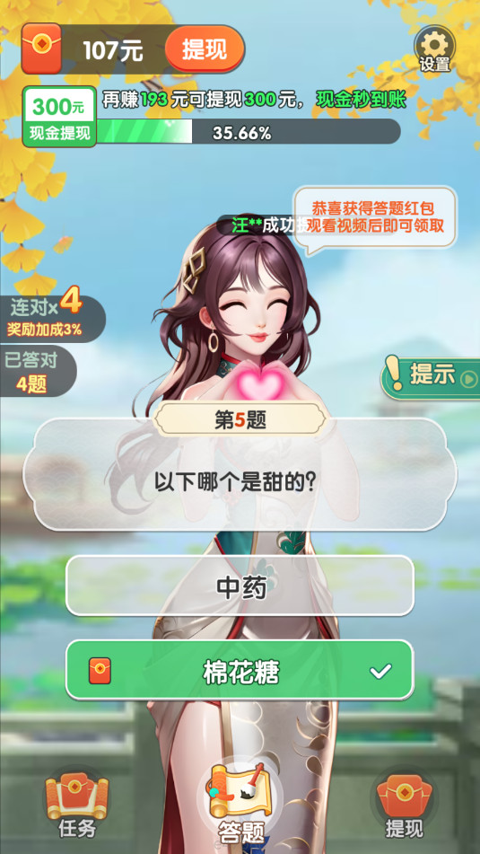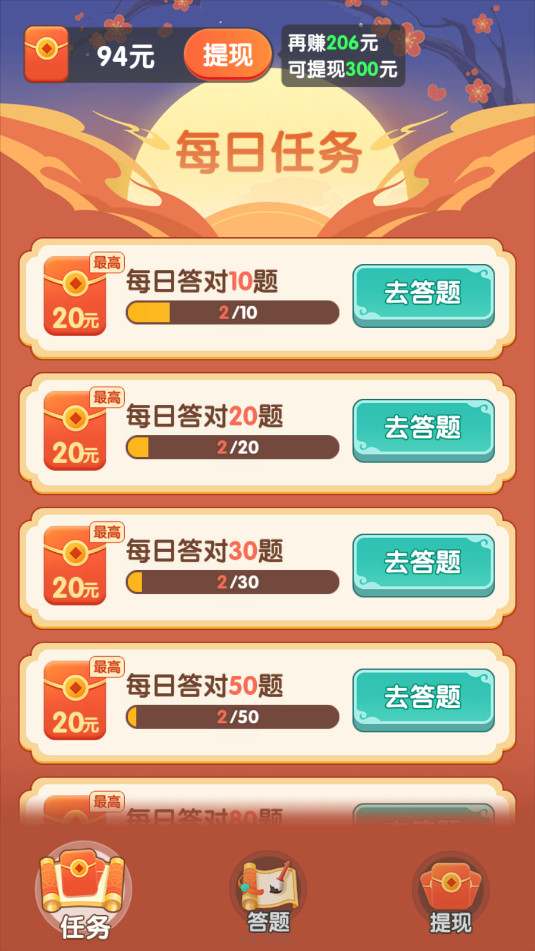 红包奖励:用户答题正确即可获得红包,激励用户积极参与。