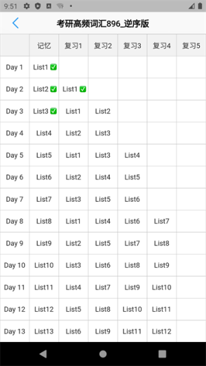 2、接下来,用户根据学习计划表,逐日进行单词的背诵,通过多次反复记忆,加深对单词的理解与掌握。