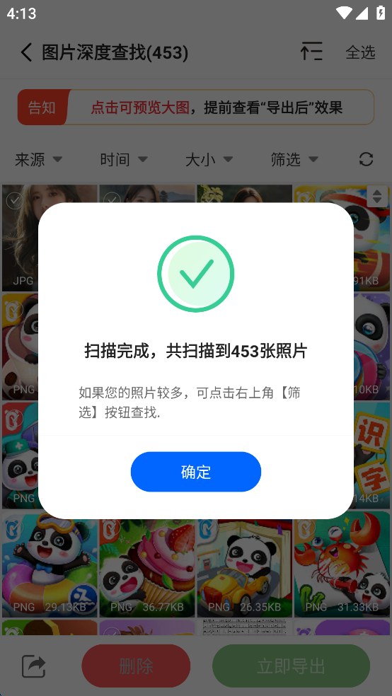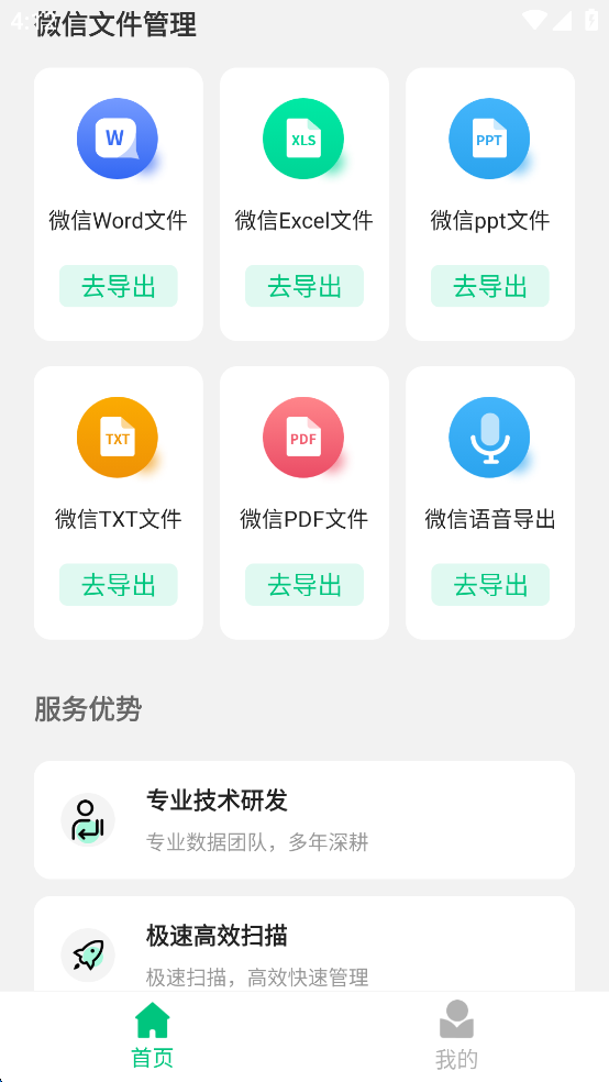 强分类整理:将相关的数据分类扫描,支持一键批量导出,更方便您进行数据管理。