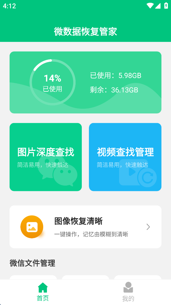 微数据恢复管家app专业数据恢复,一键找回丢失的珍贵文件!支持恢复多种类型的数据,采用先进的扫描和恢复技术,确保数据恢复的高效性和安全性,拥有简洁明了的操作界面,即使是初学者也能迅速掌握。