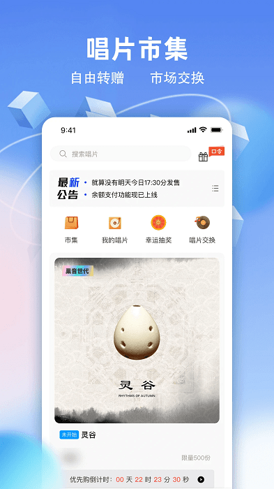 旨在为用户提供安全且靠谱的音乐版权线上交易服务,用户可以在“市集”页面购买其他用户发布的唱片,使用搜索功能可以更方便地找到心仪的唱片,如果你想在线进行版权的转赠也是支持的。