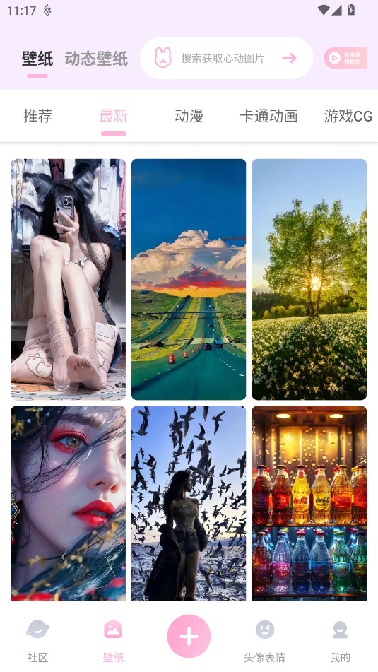 丰富资源库:除了壁纸外,还提供头像、表情包、背景图等多种资源,满足您全方位的个性化需求。