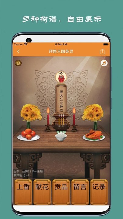 祭拜先人。您可以在线缅怀逝去的亲人,可以购买虚拟道具或者留言以寄托思念之情。