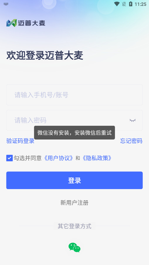 1、新用户登录选择【新用户注册】或是以其他方式的账号来绑定完成验证。