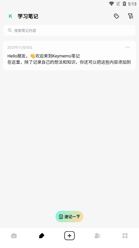 4、如果是想通过它来记录一些学习上的知识重点,就点击下方速记一下,完成内容的编辑即可。