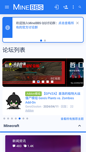 minebbs我的世界中文论坛是专为我的世界玩家打造的中文论坛软件。通过该论坛软件每一个玩家都可以在其中交流游戏经验,其中还设有资源分享板块,各种大佬自制的整合包,手机移植整合包,模组等等资源都有包含。轻松帮助玩家下载游戏资源。