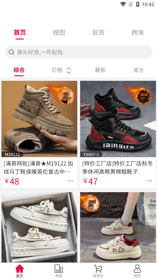 工厂直营店,可直接搜索/语音搜索商家、货号及以图搜款等功能。