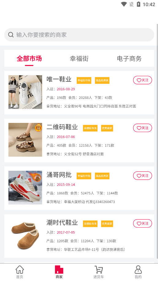 爱搜鞋入驻的批发商都是真实的实体档口,一手货源零售商可以清晰看到档口的地址和联系方式。实地审核、定期检查。爱搜鞋会定期检查,确保批发商信息的真实可靠。
