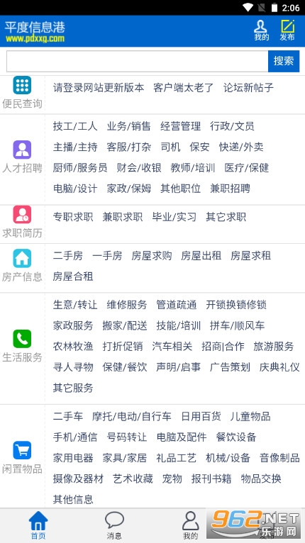 平度信息港app是一个很好用的同城便民服务软件,用户主要使用的界面非常的直观简洁,很清楚的就能够了解自己想要接触的领域。