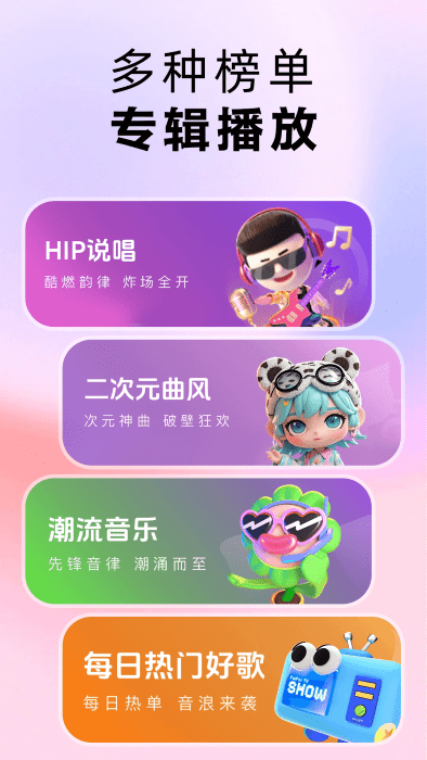 丰富音乐库:涵盖多种音乐类型,包括流行、摇滚、电子、古典等,应有尽有。