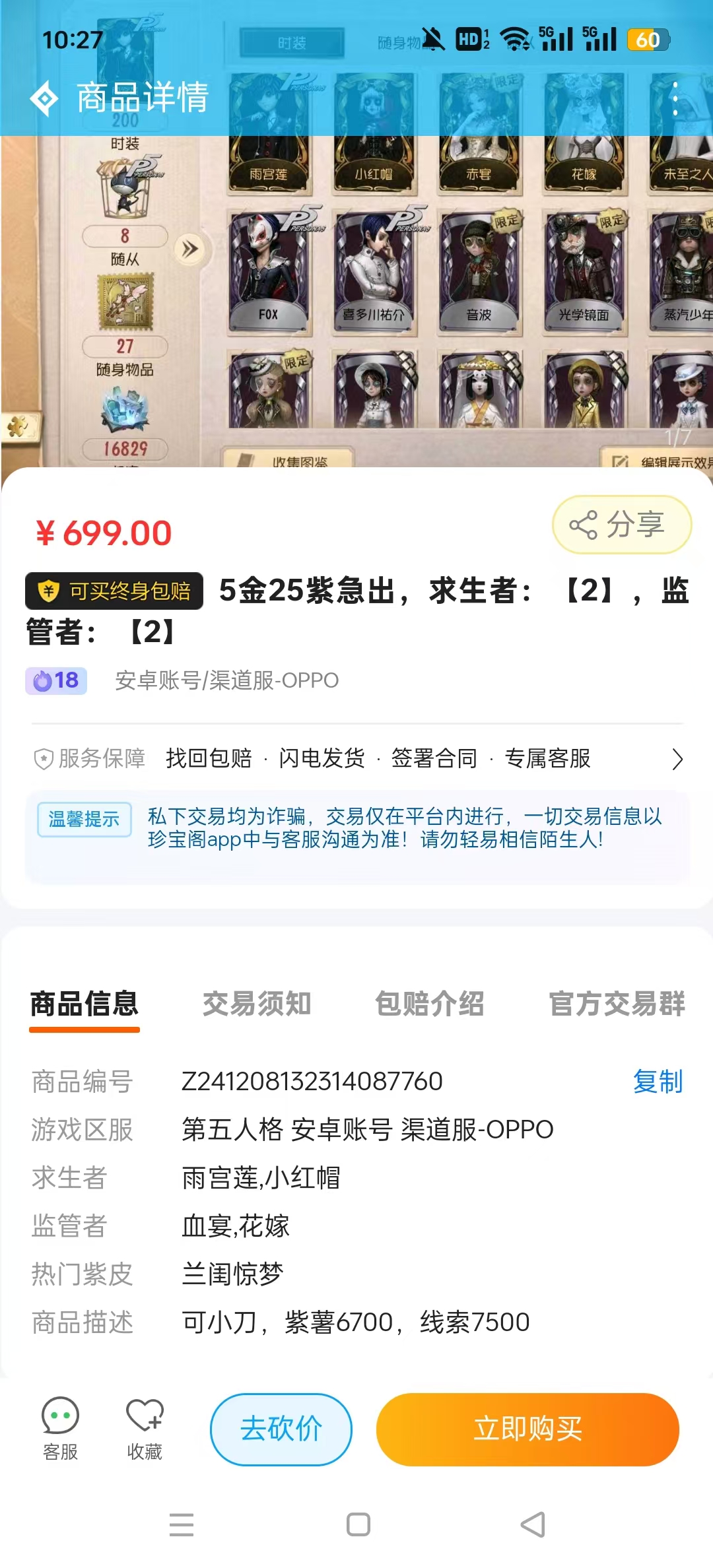【平台鉴定】在珍宝阁买账号,放心选购,专业客服上号鉴定真伪。
