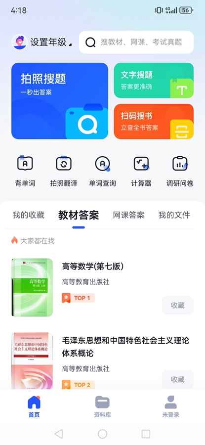 5、扫码搜书:专业课后习题不会答?扫条形码即出整本教材书籍,遇到难题无压力。