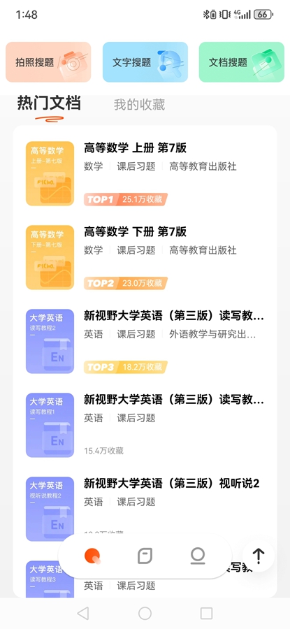题库丰富:迭代两年的大学生学习场景题库的产品,千万题库保障大学生学科学习、网课拓展、考证进阶题目全覆盖。