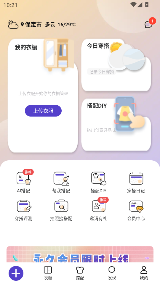DIY创作空间:突破模板限制,用户可自由叠加衣物图片创作穿搭,支持保存分享。