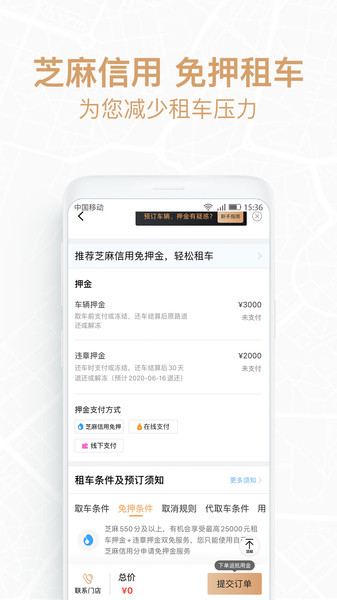 芝麻分550分及以上即有机会享免押,最高可享减免25000元车辆押金和违章押金,开启信用免押新时代,为您减少租车压力!