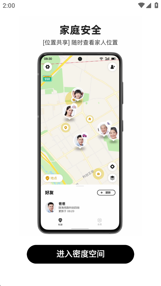 密度空间是一款为你和家人提供实时位置共享和对讲功能的定位软件,让你时刻知道父母、孩子、伴侣的位置。密度空间还可以让你的手机秒变对讲机,快速轻松地与家人、朋友实时对讲,无需解锁手机就能听到对讲消息,聊天中的语音留言让你的消息不丢失。