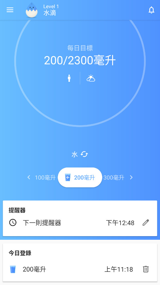 然后每次喝水只需点击一下即可记录