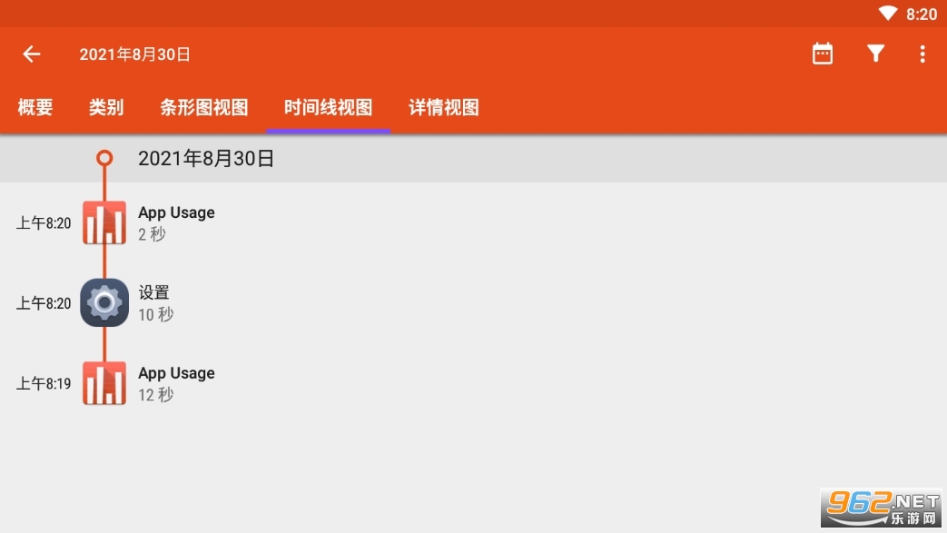 这个应用能够以时间线或日历视图显示你打开应用的时间。