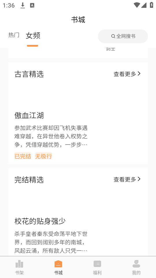 4.点击书城,选择自己喜欢的小说,直接点击就能够观看