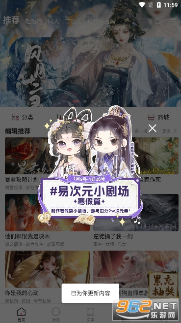 1、首先在本站下载安装好易次元app,首页上有很多交互式小说相关热门推荐!