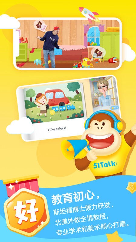 51talk启蒙英语app是一款专注于英语启蒙的教育学习类软件,并且致力于通过科学先进的学习方式引起孩子对于英语的兴趣,从各个方面全面的帮助孩子更好的英语,并且从中获取一定乐趣,从小培养孩子的英语思维表达!